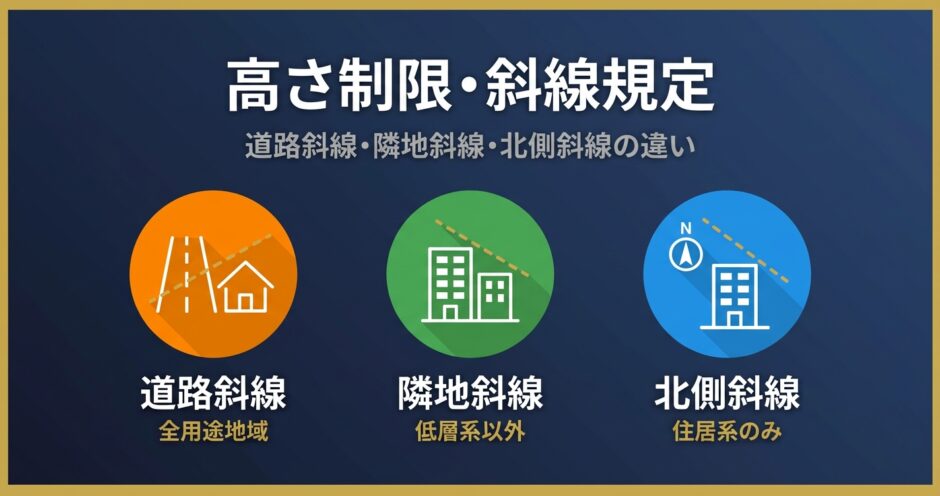 この記事では、高さ制限の全体像から各斜線制限の詳細・緩和規定まで、体系的に整理します。